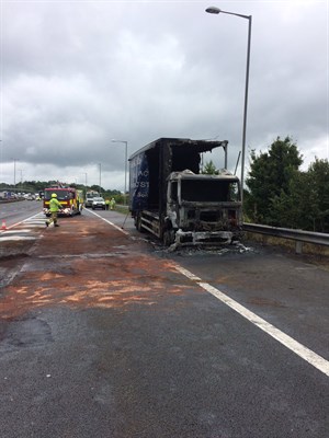 The driver and the lorry were left supported by the Highways Agency when firefighters left the scene.